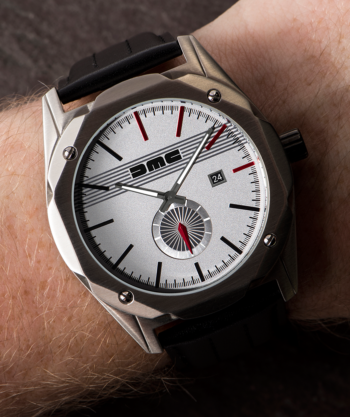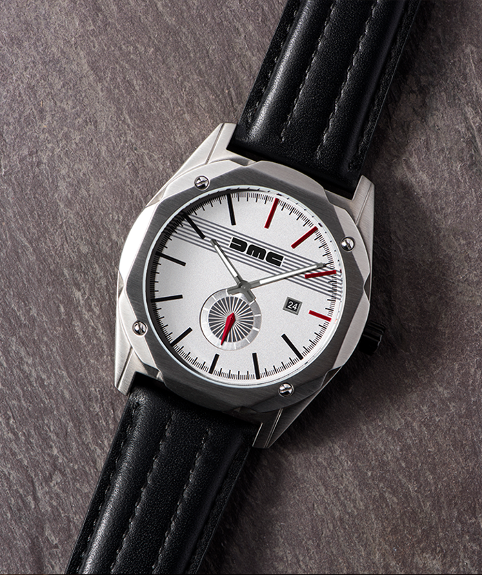 The new Live The Dream watch collection takes the design hallmarks of the inaugural DMC Alpha watches and presents them in a bigger and bolder package. Flaunting an oversized 49mm stainless steel case topped with a faceted bezel with exposed screws, the Live The Dream timepiece is as captivating as the iconic DeLorean car.